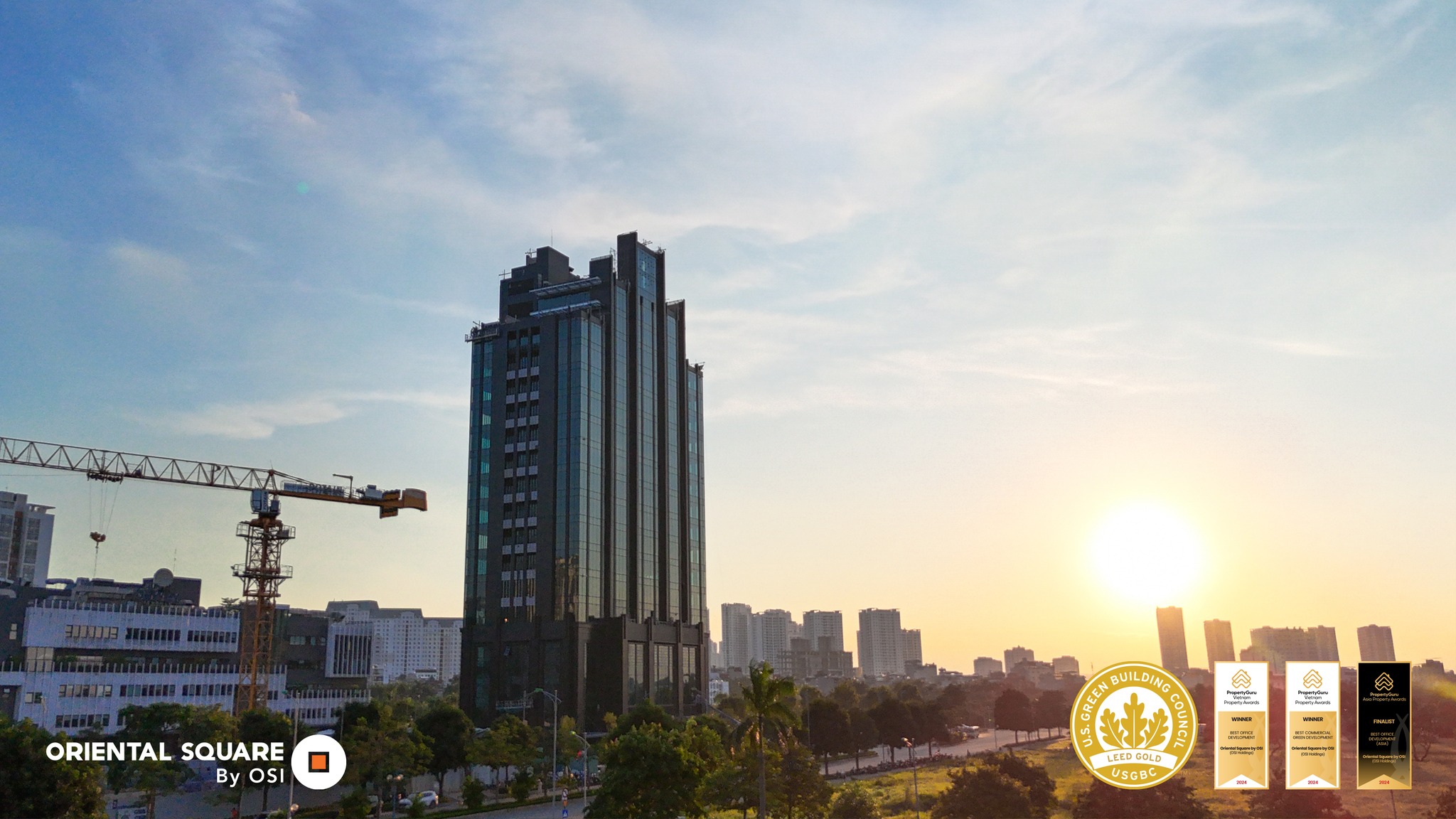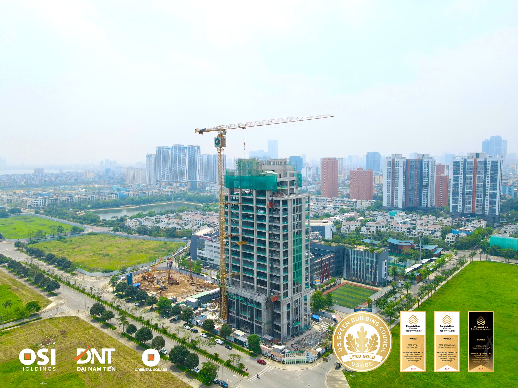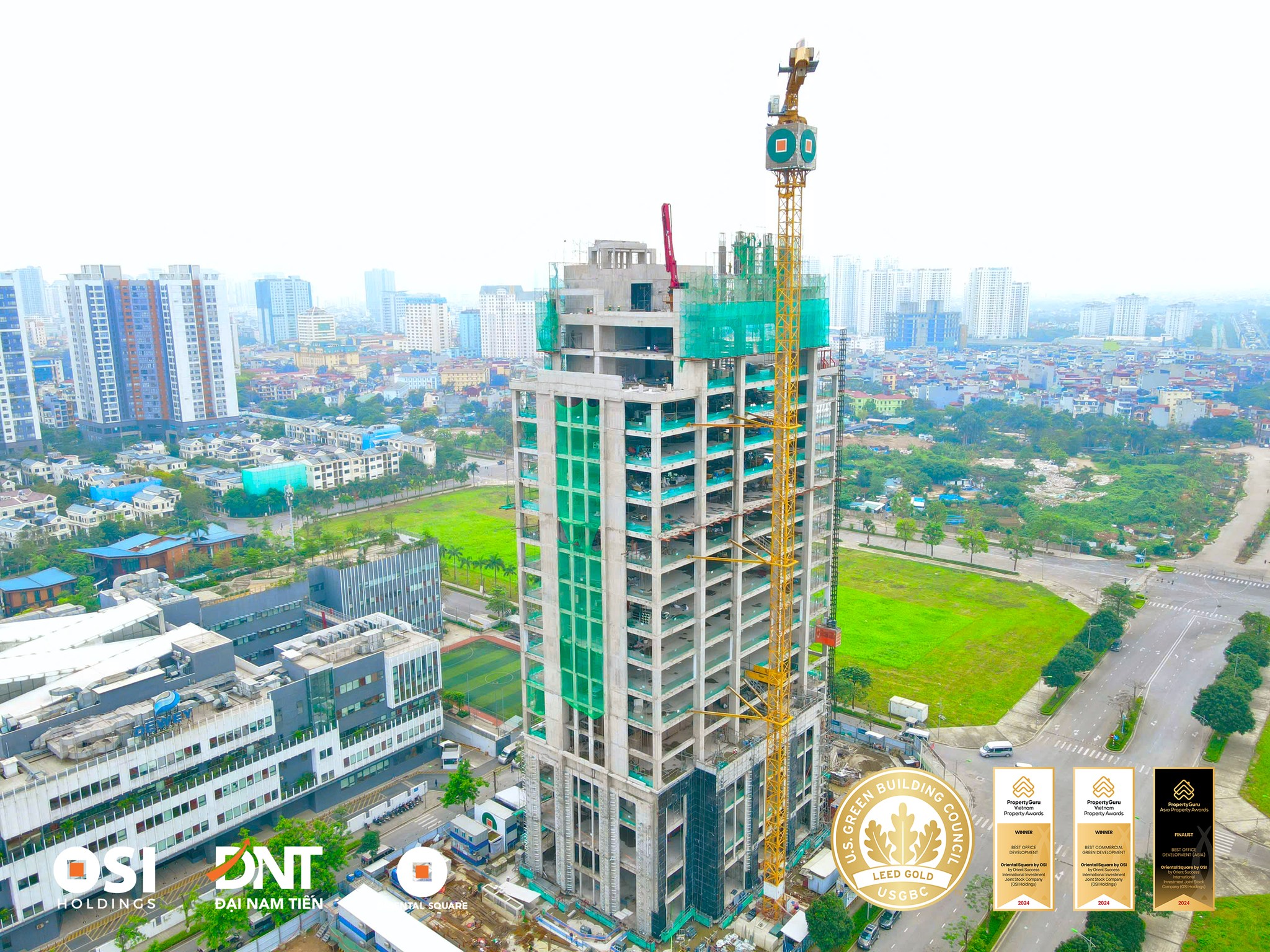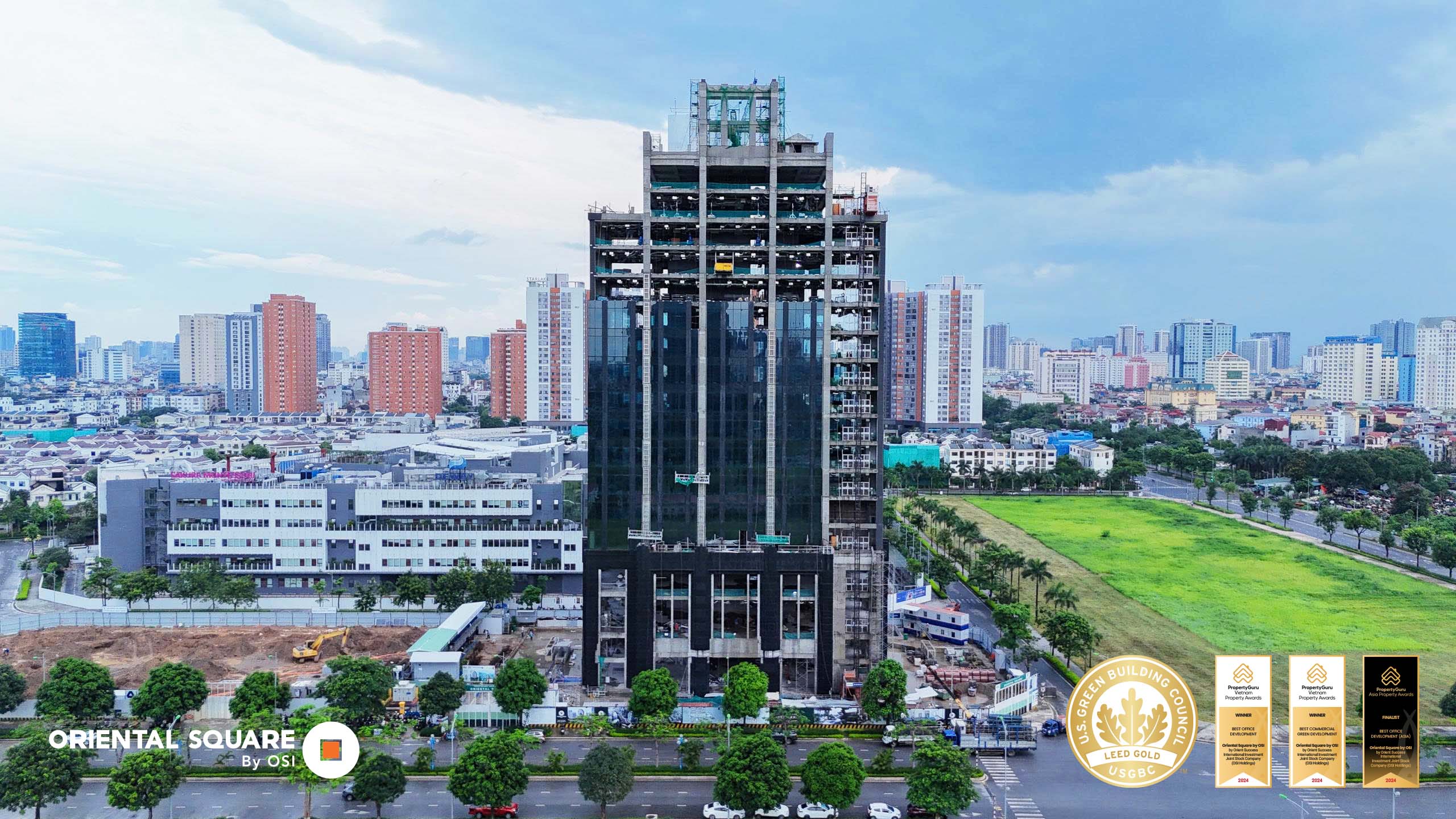 On April 19, 2025, the Grade A office building Oriental Square, developed by OSI Holdings, is currently under construction, focusing on the façade.