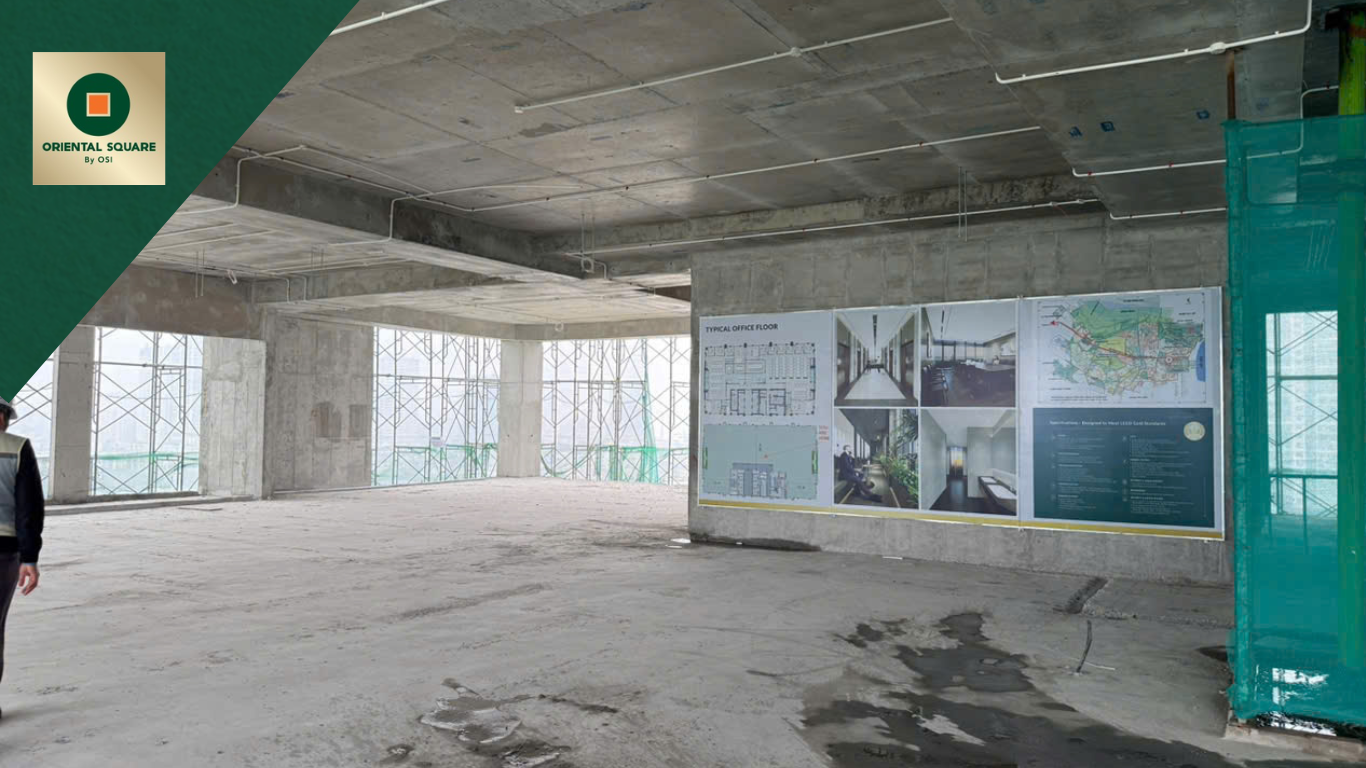 On April 26, 2025, the Grade A office building Oriental Square, developed by OSI Holdings, is currently under construction, focusing on the façade.