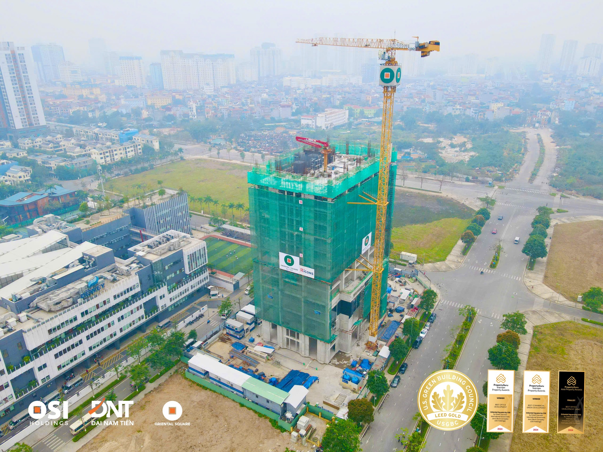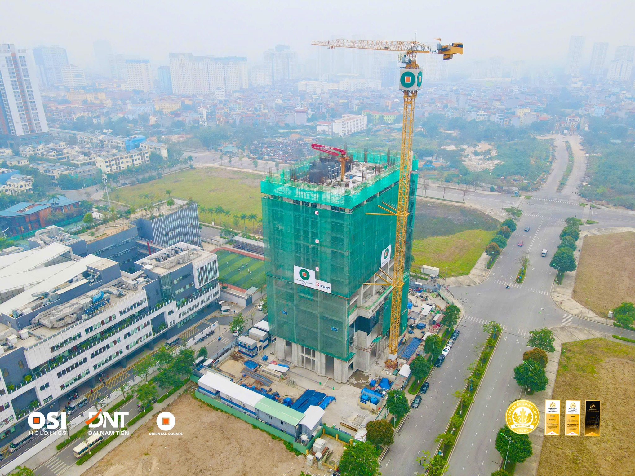 On February 14, 2025, the Oriental Square Grade A office building, developed by OSI Holdings, is in the construction phase, focusing on the columns and walls of the 9th floor, and the beams/slabs of the 10th and 11th floors, as well as the technical floor.